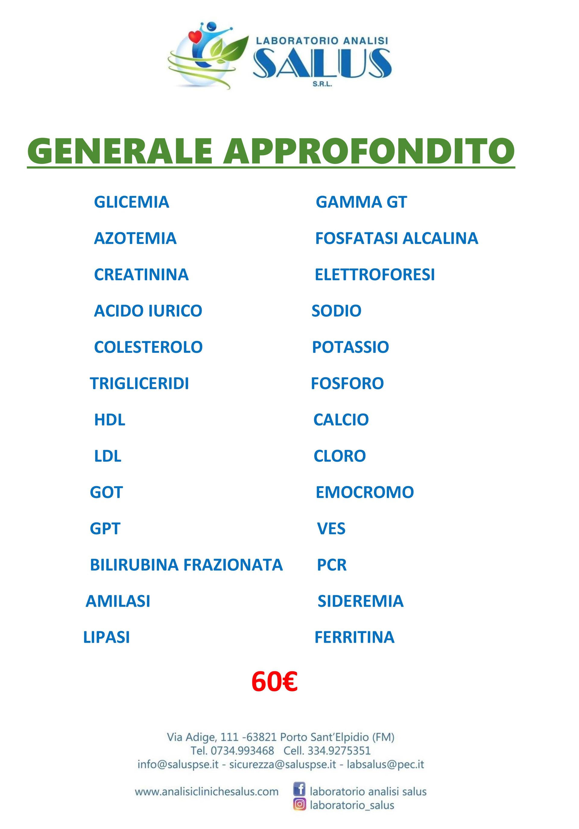 Il laboratorio analisi Salus con un'esperienza di 50 anni, è un punto di riferimento a Porto Sant’Elpidio e nel resto della provincia di Fermo grazie all’utilizzo di metodologie e tecnologie all’avanguardia, scelte per garantire servizi e prestazioni sicuri e della massima qualità. Situato in Piazza Dante Alighieri 13, il laboratorio si avvale di uno staff preparato, qualificato e costantemente aggiornato, in grado di fornire un servizio completo volto a eseguire analisi specialistiche e strumentali adatte a ogni esigenza. L’obiettivo è quello di garantire valori quali affidabilità e rapidità nella fornitura degli esiti a tutti i cittadini, sia quelli che si presentano di propria iniziativa che attraverso l’impegnativa del proprio medico curante.
